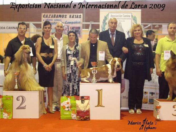 National & International Show LORCA__________________________________________________ 04/10/2009 04/10/09 was celebrated the National Dog Show and the International of city of Lorca. The place where the show was celebrated was the Fairground of Lorca and was very well prepared with moquettes in all the rings and pre-rings so that we slipped neither the dogs nor the exhibitors and the organization was also wonderful. There were Spanish, Russian judges and Polish guests to the event. Stands were many, including the one of aid to galgo, where from I want here to them to be thankful for the so wonderful work that they make by them and congratulate to them because some adoption took place, in particular for Canarias.También attended very many public enchanted with the dogs and hoped to see the end the 16:30 but in addition for these extreme much more public. It was a very pleasant day not only by the result of my dogs, if because we knew very nice people of Lorca, loving of the dogs and very nonnot interested in knowing by minors of our dear race. The day was to us very pleasant we could again share because it and be with expository friendly, like Joaquin and Laura with his rotweiler, that from I am useful here to congratulate to them by its EXC again. 1º and Better of Race and to Inma with the results of his pomi. Thanks to them the time of delay for the end was more pleasant and bearable. Alfonso presented/displayed to Mclaren; And it was a day in which Tiffany could not compete because it was making it in the National Exhibition and the International of Avignon in France with Olivier. Sunday Mclaren made Exc 1º, and BOB and BOG; what it catapulted to being able to participate to him in the end or B.I.S (Best In Show), where MCLAREN won the second in the podium, did 2º in BIS, raising like 2ºMEJOR DOG OF the NATIONAL EXHIBITION AND the INTERNATIONAL OF LORCA. From also I want here to congratulate to Jose Luis and Sea, who gained 1º B.I.S with their excellent baset deservedly hound “Chicarron Bourbon”. Tiffany in the SHOW in Avignon made Exc. 3º and also cheers to east result with the competition and level to us of Afghan that there is in France. Judge: D.Francisco Arrebola (Canary Islands-Spain) and Judge of the B.I.S. : Dª. Valeriya Vronscaya (Russia)