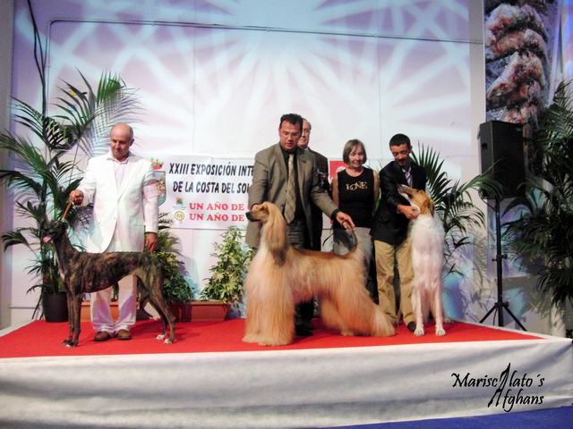 National & International Show MALAGA__________________________________________________ 25/10/2009 Sunday 25/10/09 XXIII the International SHOW in Vélez-Malaga. The place where the show was celebrated was the Fairground Buy. Alfonso handled to Mclaren; And it was a day in which Tiffany could not compete because it was making it in the National and the International show in Macedonia to the north of Greece with Olivier. Mclaren made CAC, CACIB, BOS, BOB and BOG; EXCELLENT RESULTS because in Ring it competed and it gained the afghan that it gained the obligatory point of Talavera 2009 AND IN the end of group there were greyhounds of much quality and were very fought. e Judge was Mr.Pascual Asensi (Spain).