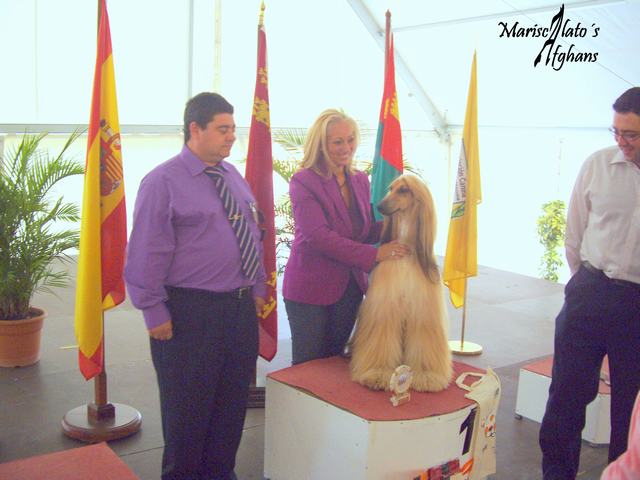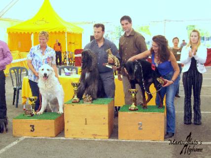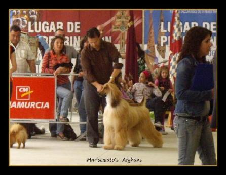 National & International Show MURCIA__________________________________________________ 23/08/2008 23/11/08 on Sunday It was The XVIII National & XV International Dog Show in Murcia , in Torre Pacheco.An pleasant day and with excellent results for my Afghans. Mclaren in open class made , Excellent 1º, CAC, RCACIB.Tiffany Excellent 2º, RCAC,RCACIB.Judge : Jose Vidal (Portugal-Venezuela)