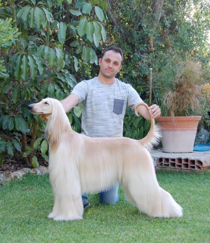 Proud of the Results in International Show in Castellon ( Spain) , One Last Kiss de Mariscalato ( Enzo x Clhoe) , aka " BLADE ", won CCJ, Junior BOS and junior BOB and ABSOLUT Best OF breed , under judgaments of Afghan Especialist Judge Mr.Jose Vidal. Thanks and Congrats to his lovely owner Elenaand Felix Duque for his perfect grooming and handling .