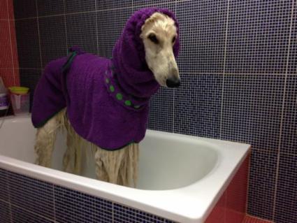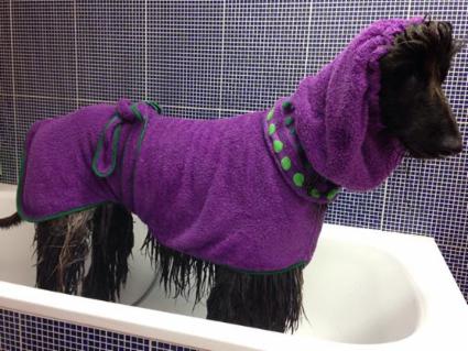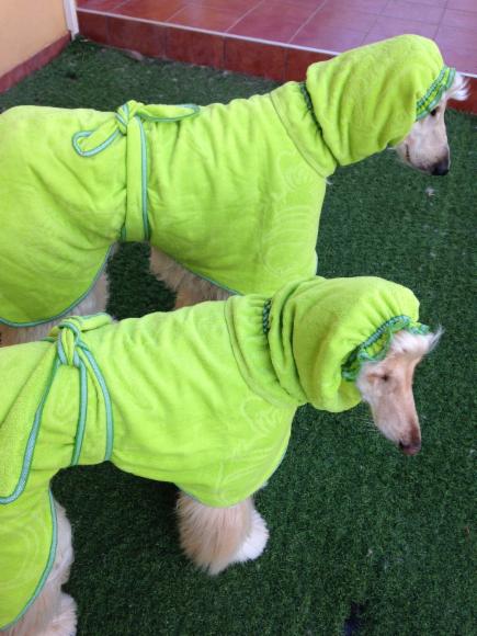 All MODELS take snood and belt matching , consult to me for more colors. It´s very useful that your afghan weare the snood while you dry her/his coat body... You can put the kennel name or the pet name of your affie in the bath coat.