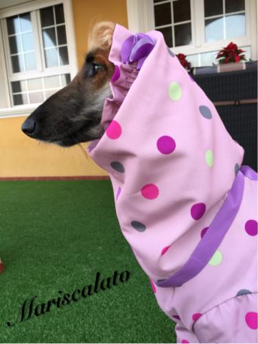 RAINCOAT Model " ROCIO " in NICE color dots on pink background