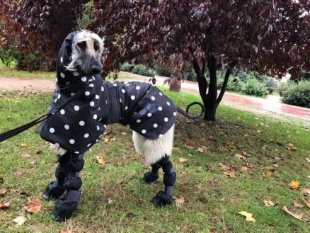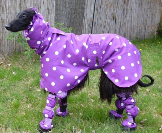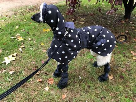 They are very fast and easy to put on, with attached snood and a slot to attach its leash through to, linned. Really water-resistant ! If you have boots yet, better !!!!! MORE PATTERNS and COLORS !!!!